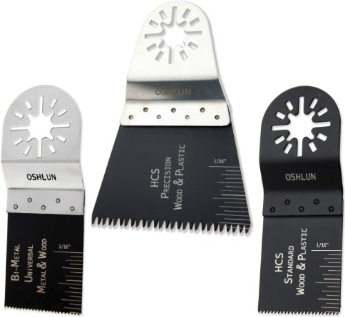 Includes one blade each and every of the MMA-01xx, MMA-03xx, and MMA-11xx.Includes a blade each and every with Universal Bi-Metal, HCS Standard and HCS Precision Japan Tooth Styles.Compatible with FEIN MultiMaster, Dremel Multi-Max, Bosch Max Multi-X, Craftsman NEXTEC, Skil Multi-Tasker, Milwaukee M12, oscillating softwares with 3/8-Inch round arbors, and many more; Notes: Not suitable with FEIN SuperCut or Rockwell SoniCrafter.Laser etched depth gauge.Combination selection 3-Pack...Oshlun MMA-9903 Oscillating Tool Blade Combo 3-Pack with Uni-Fit Arbor for Fein Multimaster, Dremel, and Bosch Features.